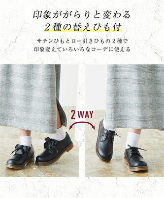 靴 大きいサイズ レディース 替え紐付 レース アップ シューズ 低反発中敷 ワイズ4E 黒エナメル/黒スムース 25.0〜25.5cm ニッセン