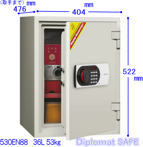 diplomat ディプロマット社 家庭&オフィス用 デジタルテンキー式 耐火金庫 容量36L 530EN88WR アラーム付 耐火・耐水 一戸建て階上設置付 ¥2000-含んでいます」(代引決済不可商品)