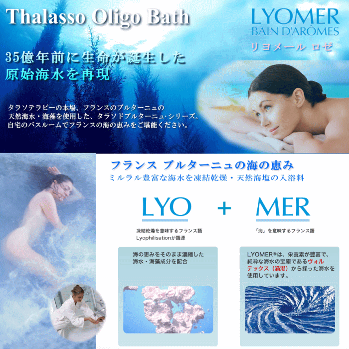 リヨメールロゼ〜タラソテラピー入浴料 世界で最もきれいといわれる、フランス・ブルターニュ地方サンマロのミネラル豊富な海水を特殊製法で真っ白のパウダーに仕上げました。
