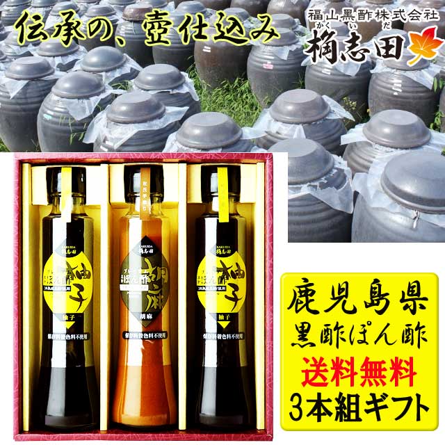 福山黒酢 桷志田 (かくいだ) 黒酢ぽん酢セット 3本入りギフトセット ゆずぽん 胡麻ポン 【産直品】 代引き不可送料無料 産直品 お中元 父の日 母の日 お見舞い ギフト プレゼント 御中元 記念日 内祝い お歳暮※北海道・東北地区は、別途送料1000円が発生します。